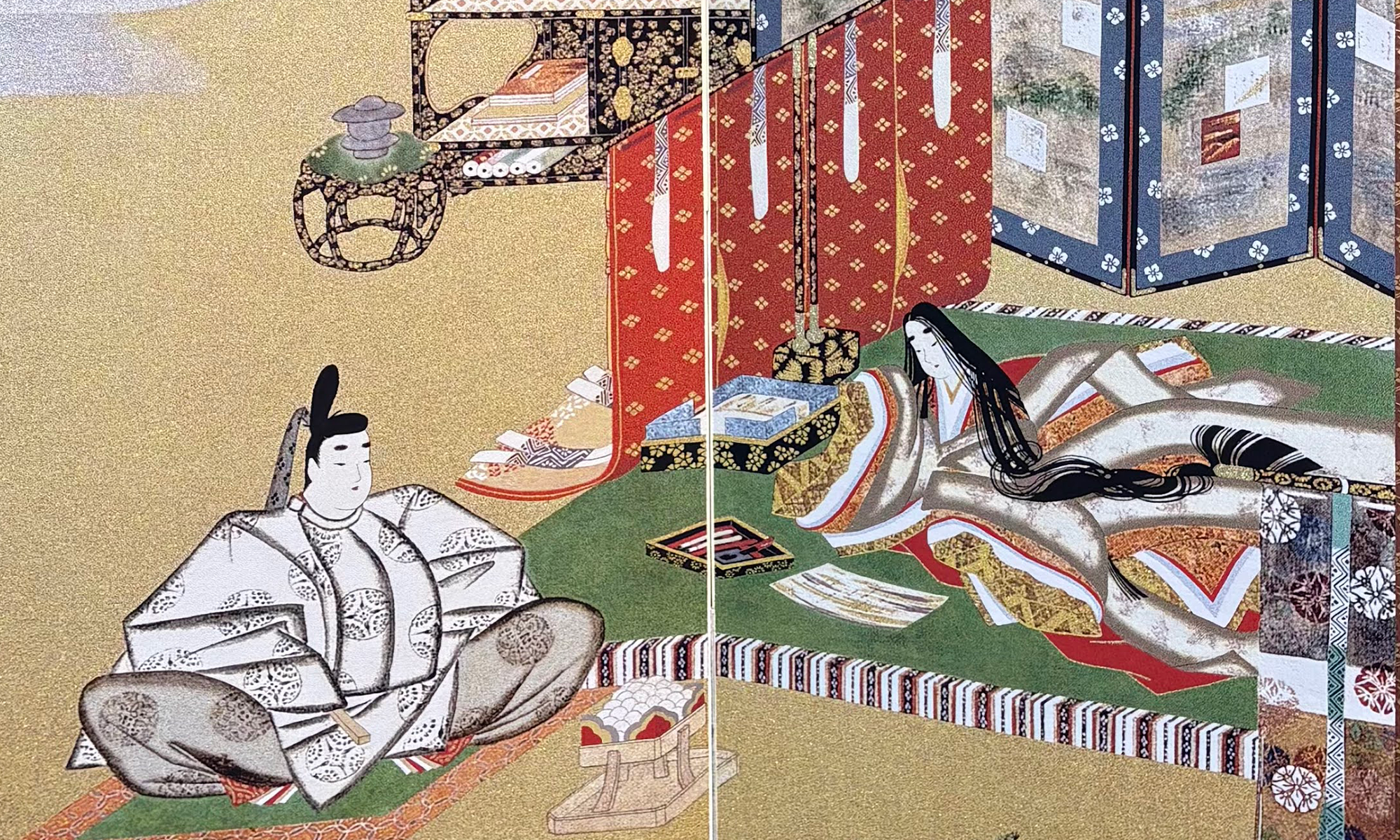 西陣美術織による源氏物語絵巻の幽玄世界をご堪能ください。